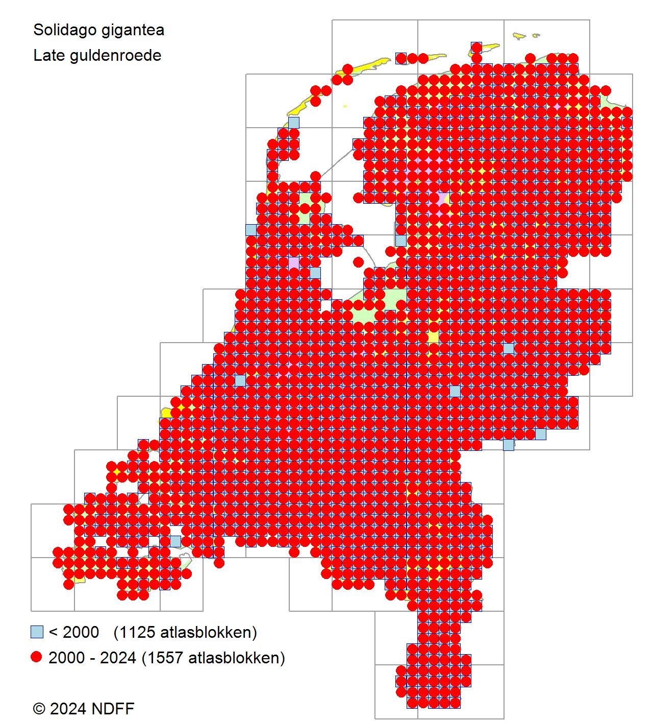 Canadese guldenroede (Solidago canadensis) en Late guldenroede (Solidago gigantea) zijn te herkennen aan de pluimvormige bloeiwijze met kleine gele composietbloemetjes. De guldenroedes bloeien van juli tot in de herfst (september / oktober). De zaden worden door de wind verspreid en blijven 1 tot 5 jaar kiemkrachtig. Ook kunnen de guldenroedes zich verspreiden via worteluitlopers.