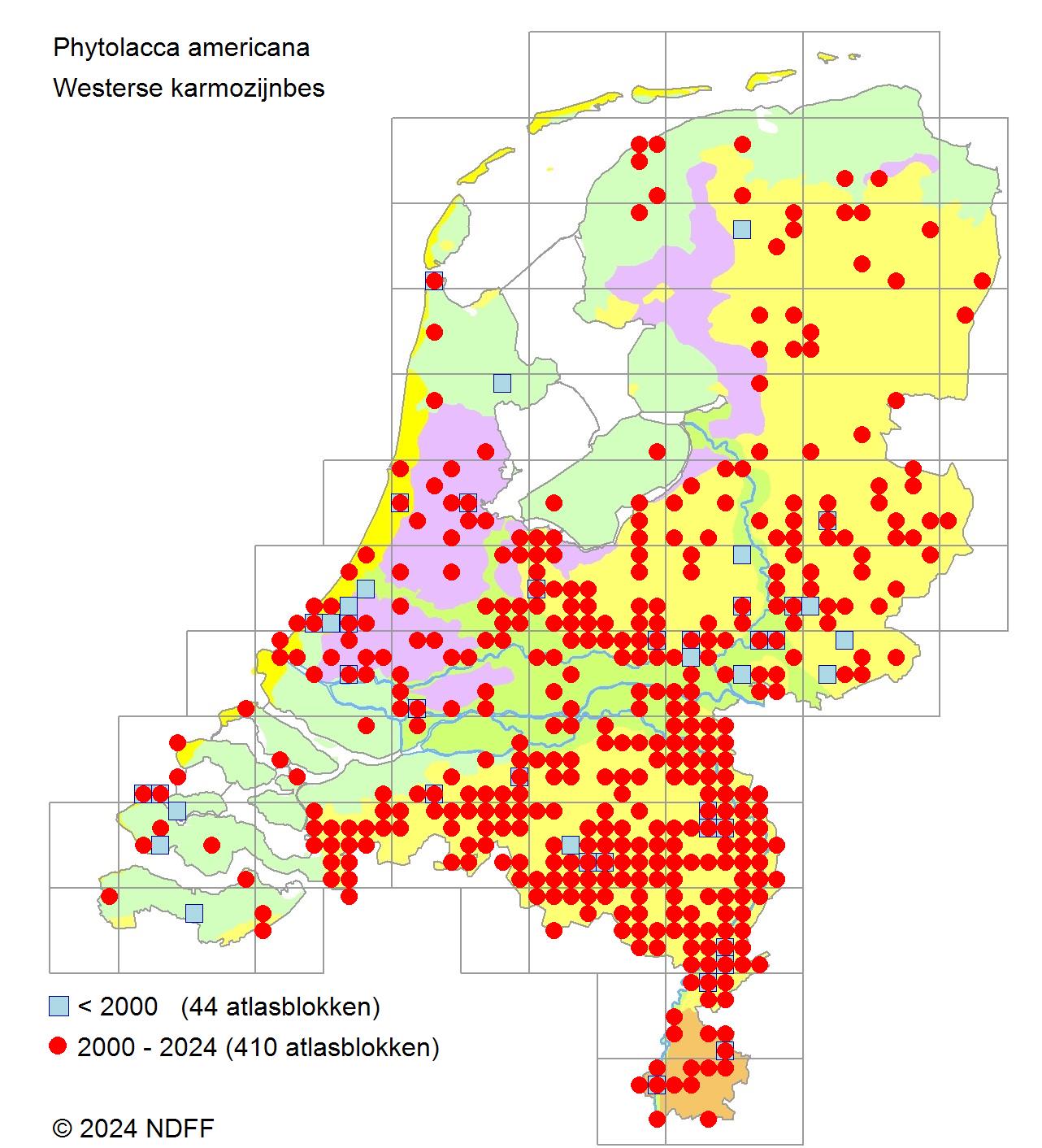 Oosterse karmozijnbes is een vaste plant uit Oost-Azië die rond 1850 in Europa is geïntroduceerd als sierplant. Minder vaak zie je de Westerse Karmozijnbes, die uit uit Noord-Amerika komt. Beide soorten hebben donkerpaarse tot zwarte bessen. De zaden, onrijpe bessen en wortels zijn giftig. Karmozijnbes vormt een risico voor natuur en milieu doordat de plant zich snel verspreidt en andere planten verdringt.